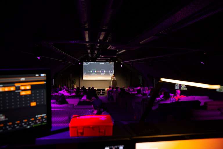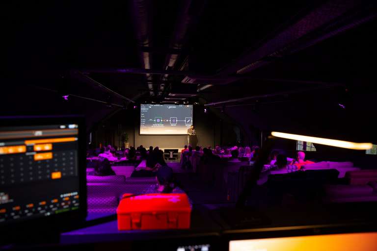 As evening approached, it was time to pack up and head to the venue, Lohmühleninsel, a scenic event space about 30 minutes from the office. The sun was just starting to dip when I arrived, and the place was already alive with energy: banners, gear, people mingling and setting up.